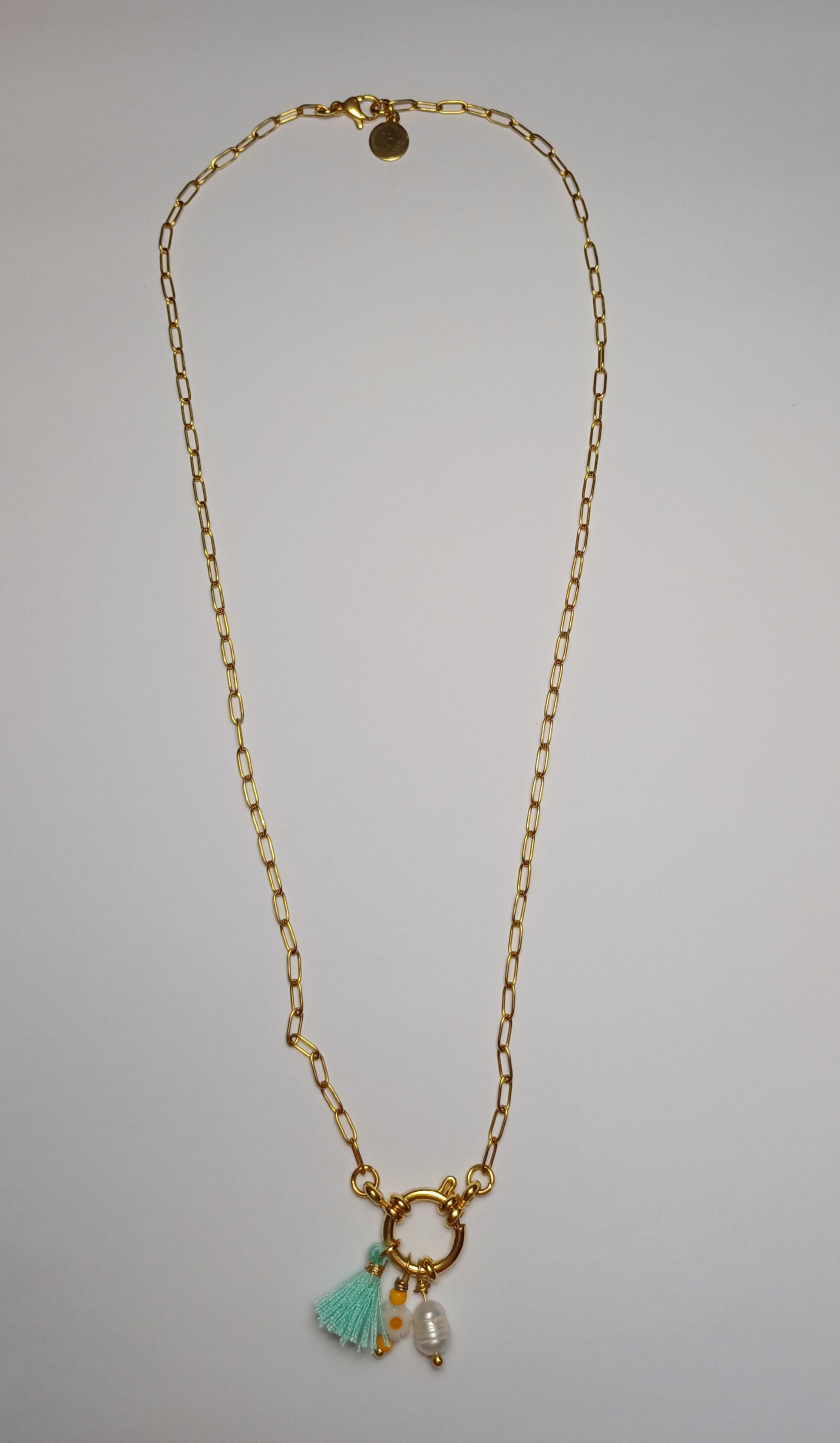 Probeer wel water, zweet, parfum ect uit de buurt te houden van je ketting zodat hij langer mooi blijft en je er langer plezier van hebt 😊