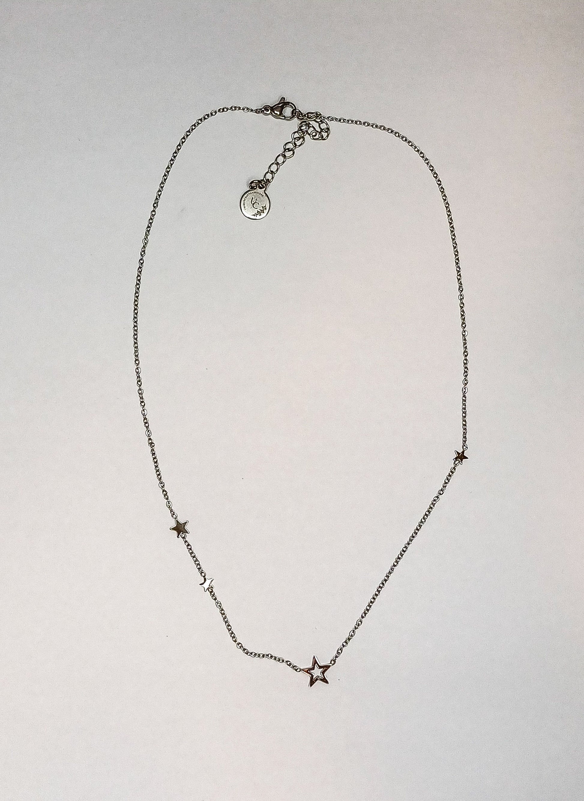 Hoe leuk is deze zilveren ketting met ster bedels. De ketting is gemaakt van stainless steel. De ketting heeft een lengte van 41 cm, verstelbaar tot en met 46 cm.