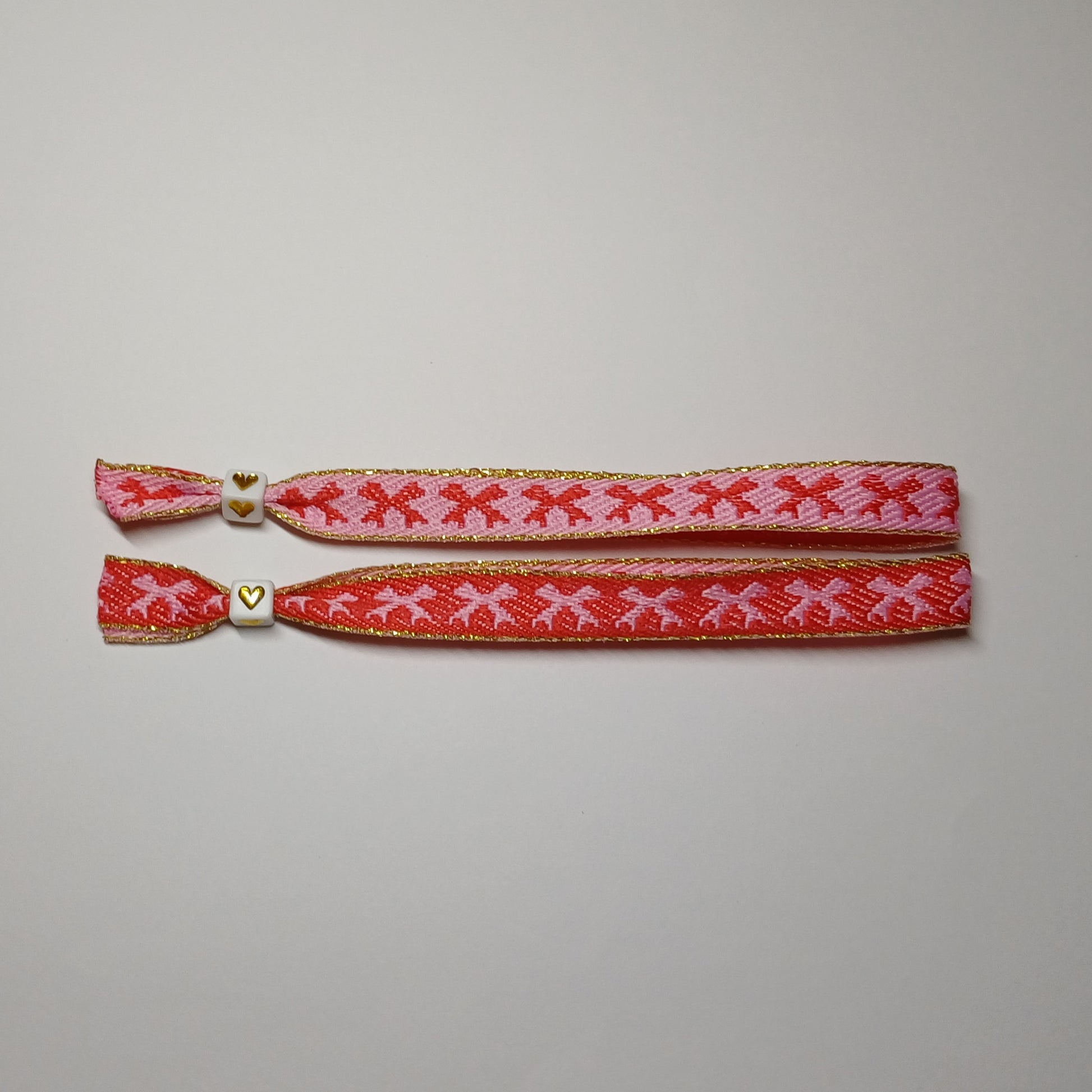 Dit is een stoffen bandjes met een verschuifbaar kraaltje aan zodat het makelijk aan en uit kan en ook voor (bijna) iedereen past. Hou er rekening mee dat de kleur van het hartjes kraaltje anders kan zijn dan op de foto!