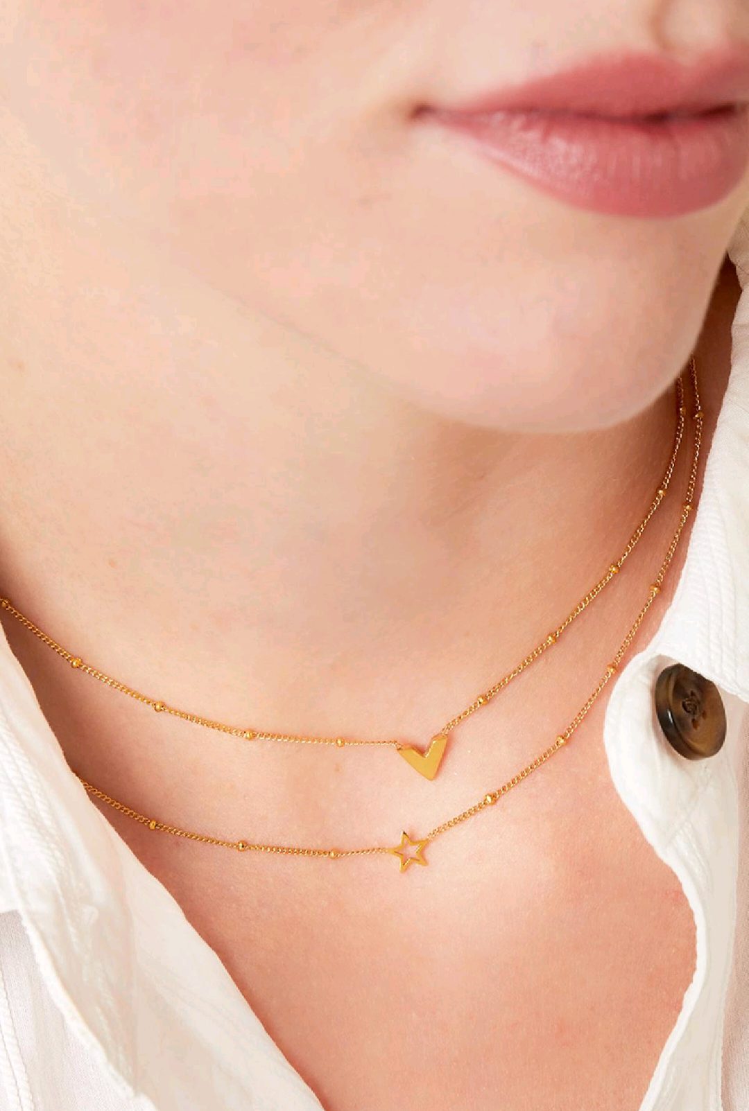 Hoe leuk is deze zilveren ketting met een v bedels. De ketting is gemaakt van stainless steel. De ketting heeft een lengte van 38 cm, verstelbaar tot en met 43 cm.