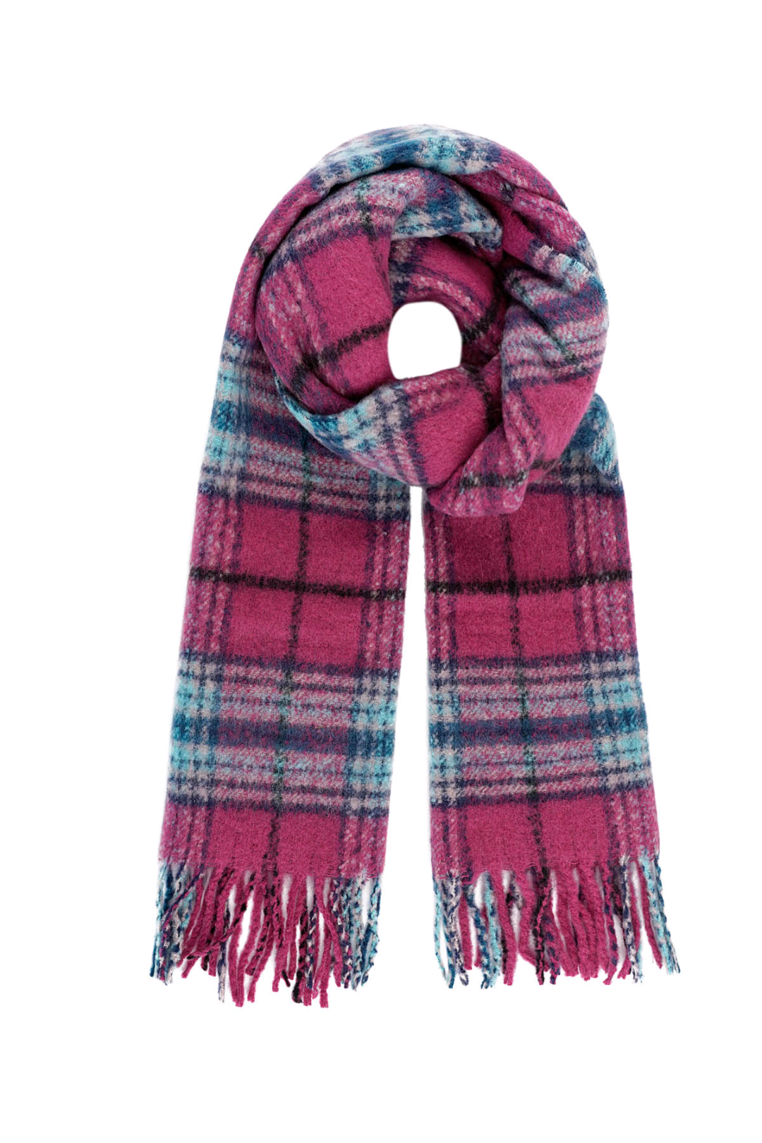 Wintersjaal geruit fuchsia