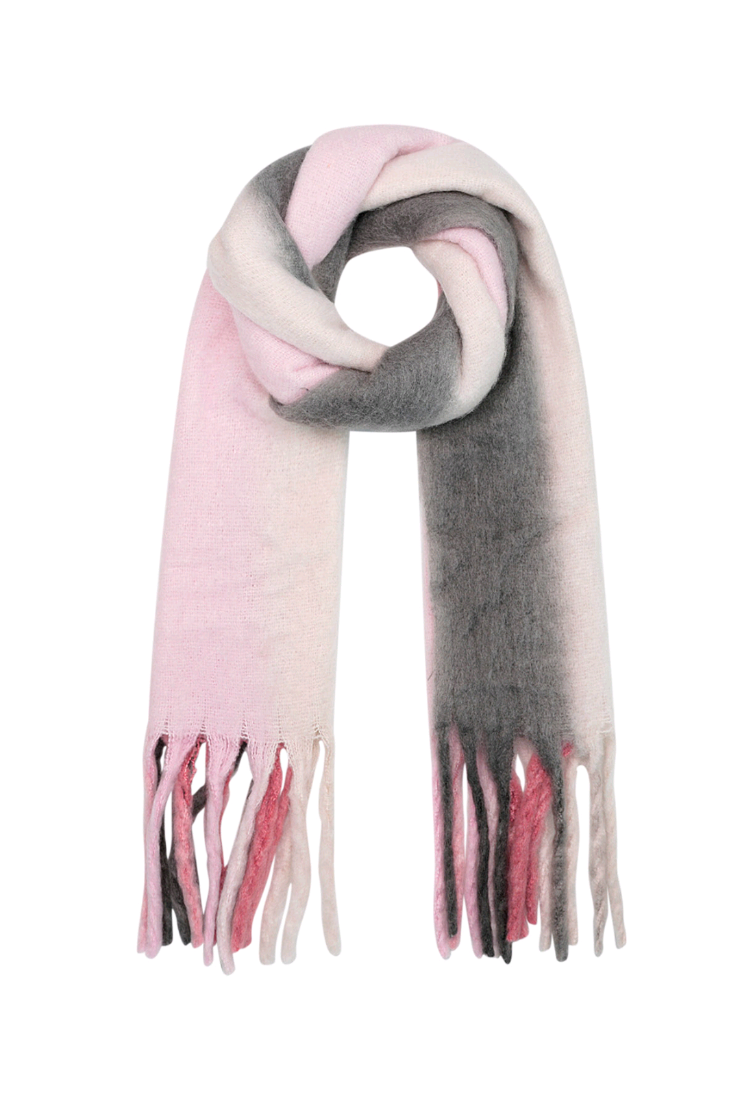Mooie wintersjaal met ombré effect, waarbij de kleuren in elkaar overlopen van licht naar donker. Deze variant heeft de kleuren roze en grijs en is gemaakt van 100% polyester. De sjaal is ook beschikbaar in andere kleurtjes! De sjaal heeft een afmeting van 180 cm x 50 cm. Groot genoeg om je lekker warm te houden in de koudere maanden.