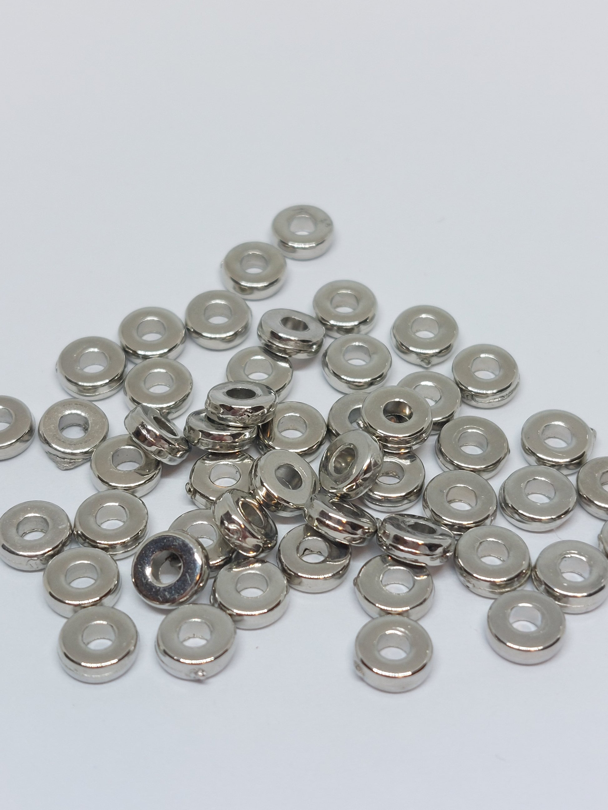 Dit zijn zilveren plastice katsuki kralen ze worden verkocht per 22 stuks.
